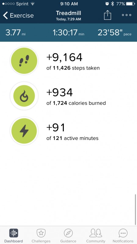 To start working out daily with the kettlebells, to track my food with MyFitnessPal and stay within my calorie range each day, and to get 10,000 steps a day