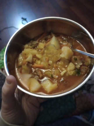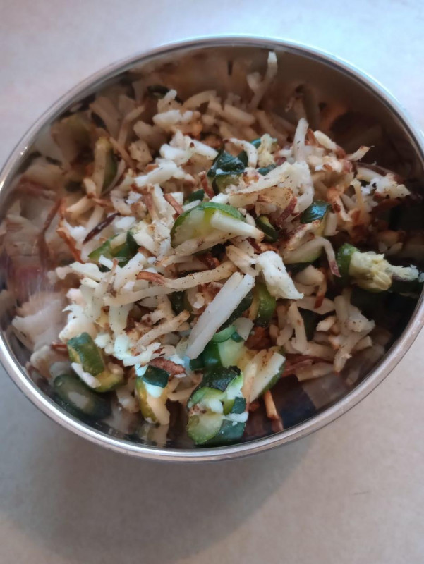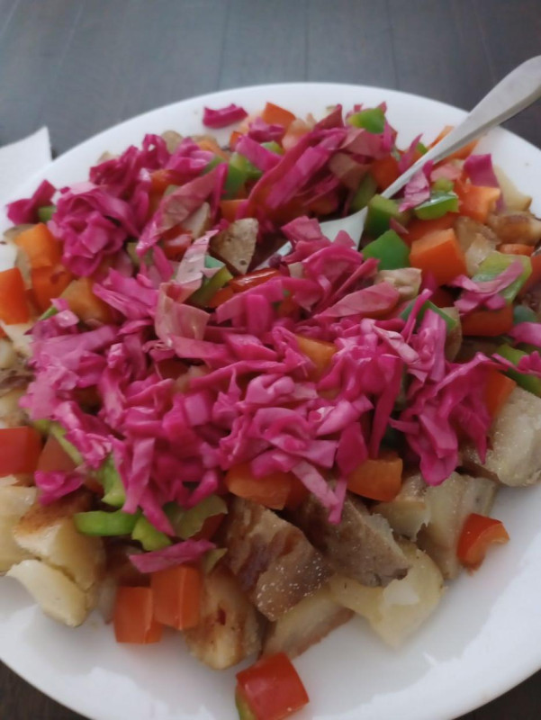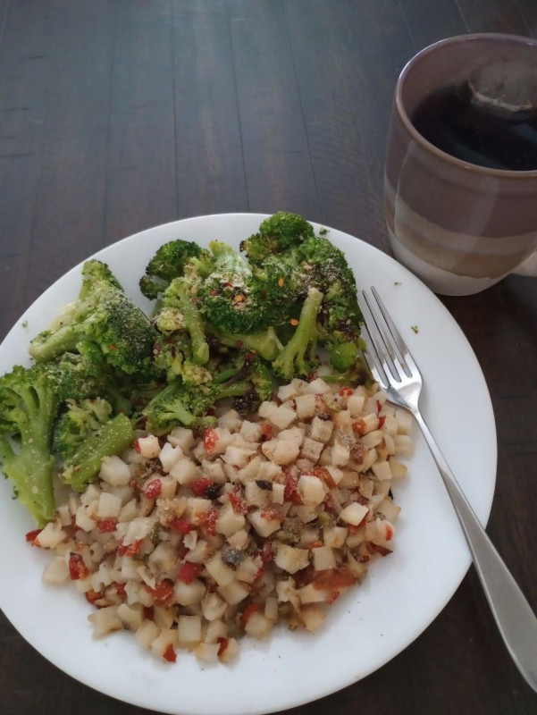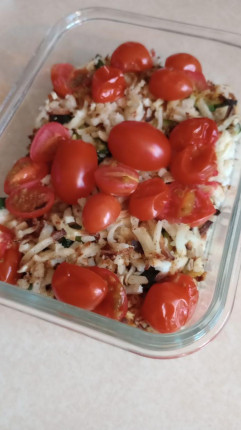 - Super late lunch...early dinner? Haha! Leftover hashbrowns and zucchini with tomato